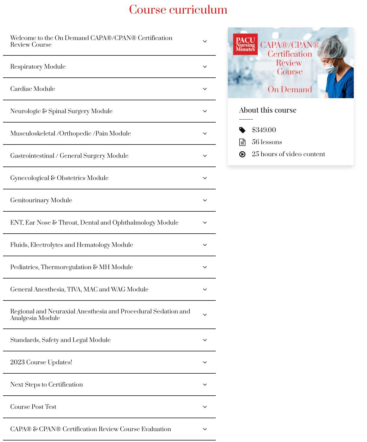 PACU Nursing Minutes offers on-demand specialty perianesthesia nursing education, from our PACU Nursing Basics 8 hr. course to our flagship comprehensive CAPA®/CPAN® Certification Review Courses; we have multilevel on-demand education to grow RNs on expertise knowledge needed to care for the perianesthesia surgical client. To date over 126 RNs certified and over 900 RNs have enrolled in one or more of our courses! Subscribe Today & Learn how PACU Nursing Minutes can grow individuals, teams and healthcare systems!